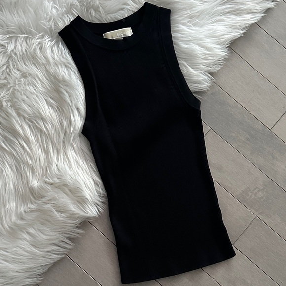 Chic black ribbed tank top by Michael Kors. Sleeveless design for versatile styling. Worn once, basically like new! 23 inches long. Beautiful quality fabric!!