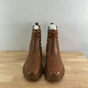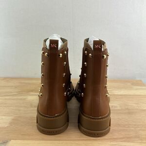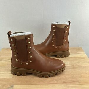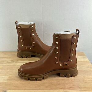 New in the box Michael Kors Ridley Studded Leather Gore Lug Sole Booties- Luggage- Size 6 M
