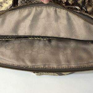 Michael Kors Riley Black Tan Beige Python Embossed Leather Satchel Crossbody
