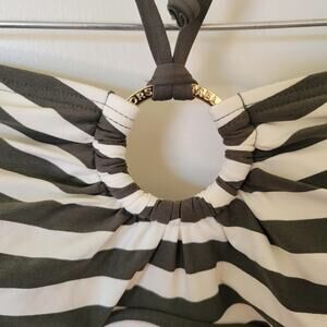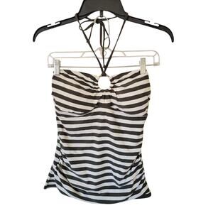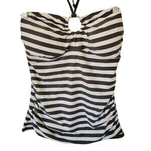 Get ready to make a splash with this stunning Michael Kors Ring Shirred Bandeau Tankini Swimsuit Top! This top is in excellent used condition from the Michael Kors 2020 Cruise Collection, ready for your next vacation, beach trip, or pool day.