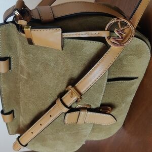 Michael Kors Romy Tan Suede Leather Messenger Saddle Crossbody Bag
