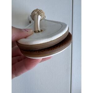 Step out in style with these chic Michael Kors rope sandals! These sandals feature a beautiful white rope design accented with elegant gold hardware, perfect for adding a touch of sophistication to any outfit. They are a women's size 8. These sandals are in great condition and ready for a new home. The do have some wear, on the bed of the shoe removing the sticker damaged the bed. There is plenty of tread on the bottom still left.