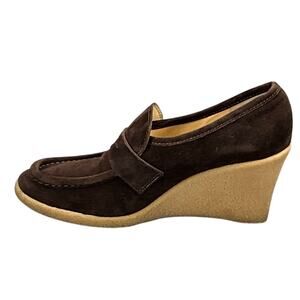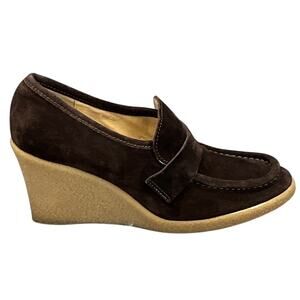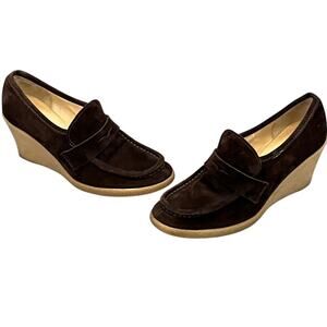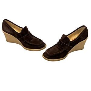 Michael Kors Rory Y2K Chocolate Brown Suede Platform 3" Wedge Loafer Women 9