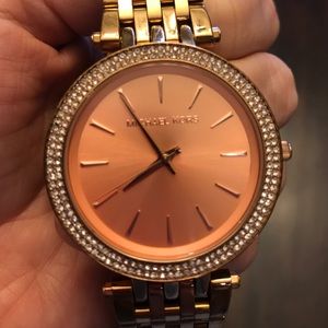 Michael Kors Darci watch in Rose Gold color. Shows signs of wear but still in great condition! Had 2 links professionally removed (included). No box.