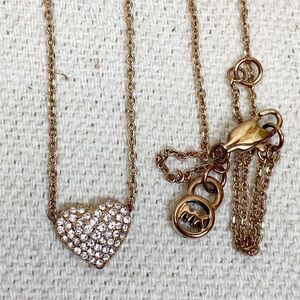 Rose gold chain with clear pave rhinestone heart - adjustable length- gently worn, no flaws