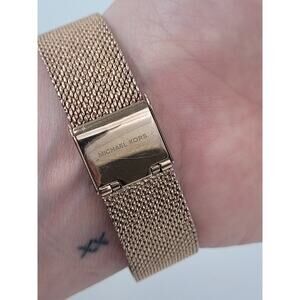 Add a touch of elegance to your wrist with this stunning Michael Kors watch. This beautiful timepiece features a rose gold-tone finish, a delicate mother of pearl face, and dazzling rhinestone accents that catch the light with every movement. Perfect for any occasion, from everyday wear to special events, this watch effortlessly combines sophistication and style. This watch is in excellent condition and has been well-cared for. It will require a new battery.