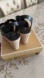 Elegant black leather wedges with tan woven platform. Features gold zipper detail.