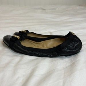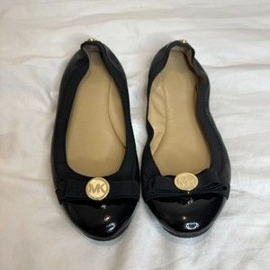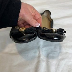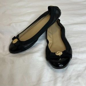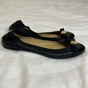 Michael Kors Round Toe Ballet Flats Black Leather Bow Size 6.5