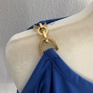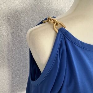 Michael Kors Royal Blue Cold Shoulder Blouse with Gold Shoulder Chain Accents