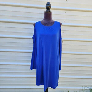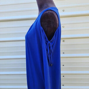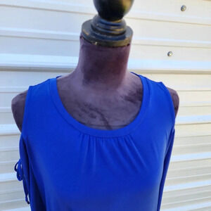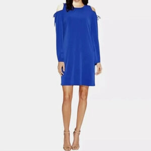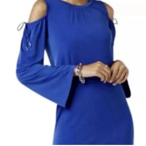 Michael Kors Royal Blue Cold Shoulder Tie Sleeve Knit Dress Stretch Long Slv M