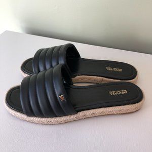 MK's Royce slide sandals will be a chic addition to your warm-weather rotation. Defined by a striking combination of quilted leather and jute, they feature just the right amount of lift that doesn’t sacrifice day-long comfort. Pair yours with a vacation-ready dress.