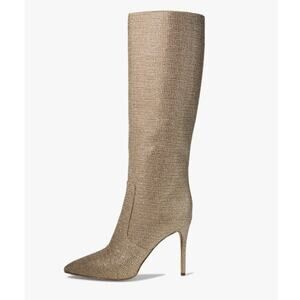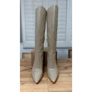 Michael Kors Rue Stiletto Knee High Boot Pale Gold 8.5 NWOB Glam Sequin Design
