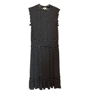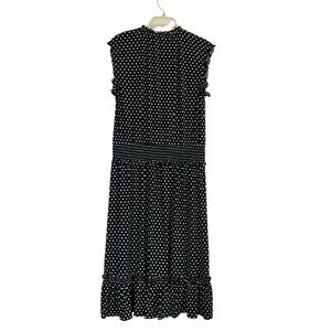Michael Kors Ruffled Smocked Waist Black & White Polka Dot Dress (Size XL)