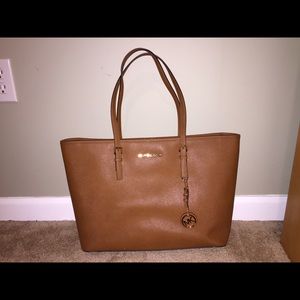 NEW! Brown leather Michael Kors tote bag! It includes a built in laptop case that is made for Macbooks. It also has tons of room for text books and notepads! This bag was co-designed by Apple to fit their products 😊