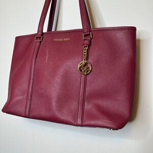 Michael Kors Sady Medium Saffiano Leather Tote Bag Dark Red
