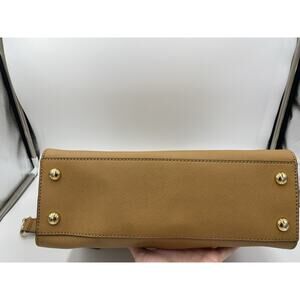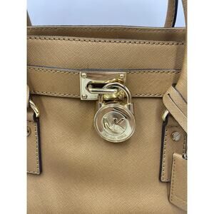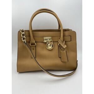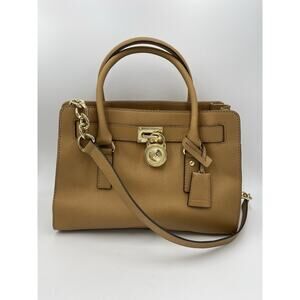 Michael Kors Saffiano Leather Hamilton Satchel Tote Bag Caramel Gold Medium