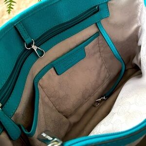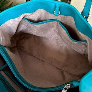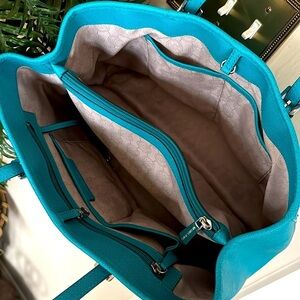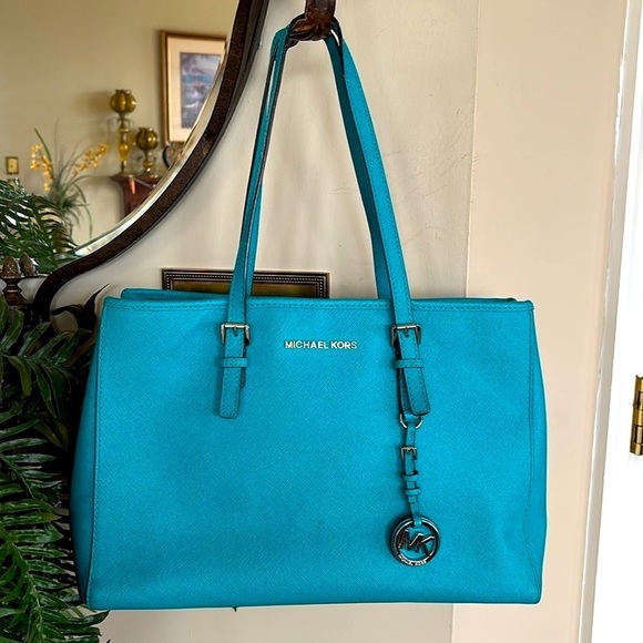 Michael Kors Saffiano Leather Jet Set Large Tote Turquoise Blue Shoulder Bag