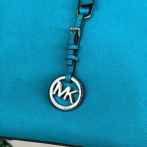 Michael Kors Saffiano Leather Jet Set Large Tote Turquoise Blue Shoulder Bag. Silver tone hardware.