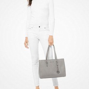 Michael Kors Saffiano Leather Jet Set Zip Silver