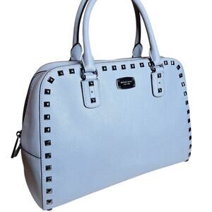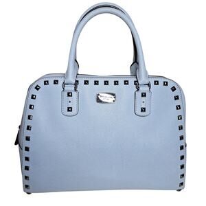 Michael Kors Saffiano Stud Large Satchel Purse dome bag pastel blue double strap