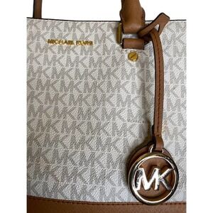 Michael Kors Saffiano leather Handbag Off White and Acorn Brown
