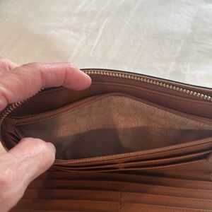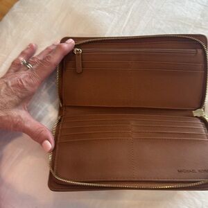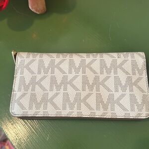 Elegant Michael Kors wallet in white and brown. Perfect for organizing your essentials with style. Never been used. The zipper pull has some discoloration