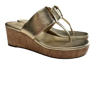Step out in style with these elegant gold wedge sandals from Michael Kors. Perfect for any occasion, these shoes offer both comfort and sophistication. I think these may have been worn once.