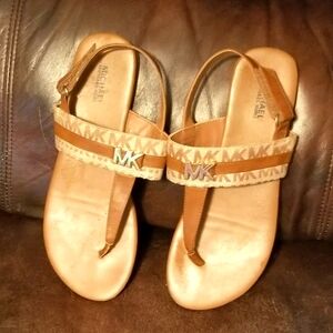 This is a pair of Michael Kors sandals in a kids size 5 in great condition! Worn a handful of times!! Hardware is in perfect condition, and has velcro closure.