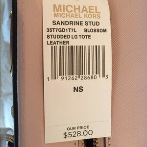 Michael Kors Sandrine Large Studded Saffiano Pink Leather NWT