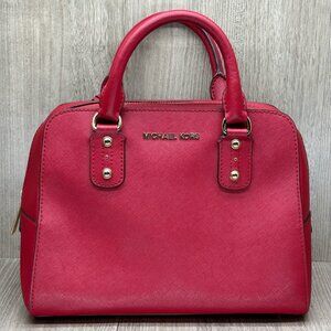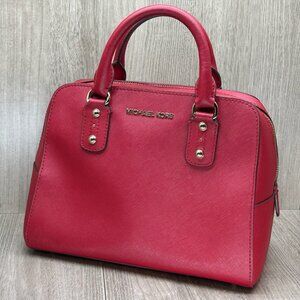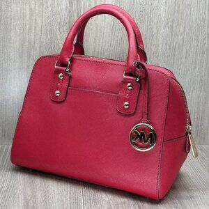 Michael Kors Sandrine Satchel Top Handle Handbag Saffiano Leather Scarlet Red