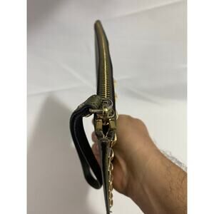 Add a touch of glam to your accessories with this Michael Kors Sandrine Studded Leather Clutch, featuring a sleek pale gold finish and bold metal stud accents. With a spacious interior and secure zip closure, this wristlet blends fashion and function—perfect for evening outings, travel, or upscale everyday wear.