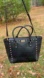 Michael Kors Sandrine large studded tote bag in black saffiano leather with gold-tone hardware. Has no call outs. New without tags.