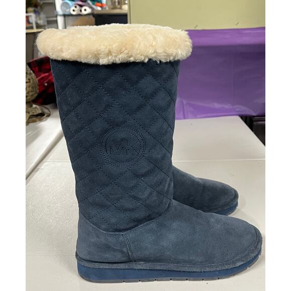 Michael Kors Sandy Quilted Suede Winter Boots Navy Women's Size 8