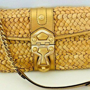 Michael Kors Santorini Straw Clutch Satchel Chain Shoulder Strap.