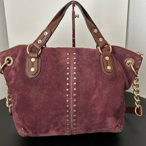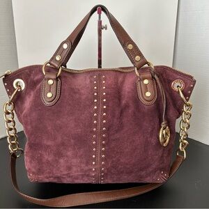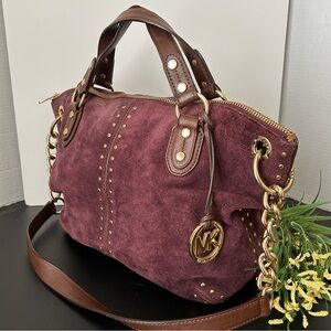 Michael Kors Satchel Shoulder Bag in cranberry suede w/ gold metallic rivets