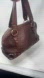 Preowned. Notice very small ink spots inside as pictured. 14 inches in length width is 6 inches height is 8 inches strap drop is 7 inches. On backside notice a small spot on lower left corner as pictured also slight scuff on the top.