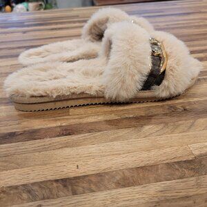 Michael Kors Scarlett Chain Cozy Faux Fur Slippers in camel multi color