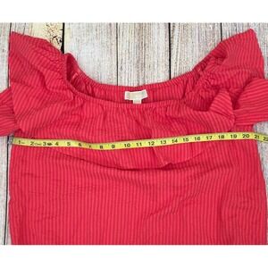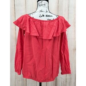 Michael Kors Seersucker Blouse Medium Sangria Pink Ruffle Off Shoulder NWT