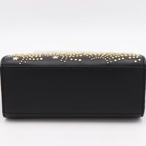Shimmering gold-tone studded hues shine the front of a chic star-struck leather crossbody