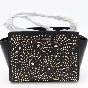 NWT MICHAEL Michael Kors Selma Leather Studded Messenger Crossbody Bag