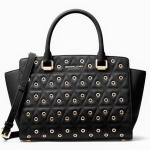 Michael Kors Selma Grommeted Quilted Leather Satchel Shoulder Bag $358 NWT #114