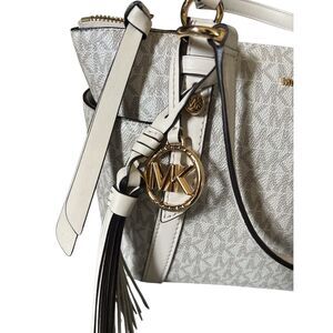 Michael Kors Selma Jet Set Medium Tote Satchel Bag Vanilla MK Logo Gold Hardware