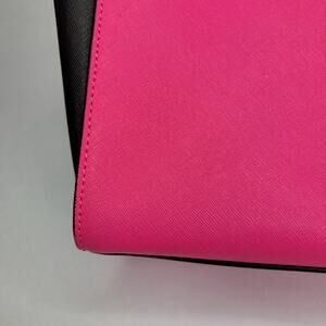 Michael Kors Selma Large Colorblock Satchel Pink Black Leather Handbag