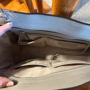Great in color with silver hardware. Crossbody strap is adjustable & removable. Lots of great organization with many pockets.