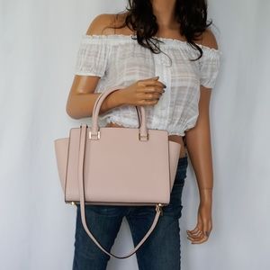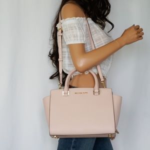 Michael Kors Selma Medium Satchel Shoulder Leather Bag Ballet