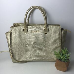 In overall great condition! The bottom stud feet have minor scratches. It includes the large strap. Smoke free home.