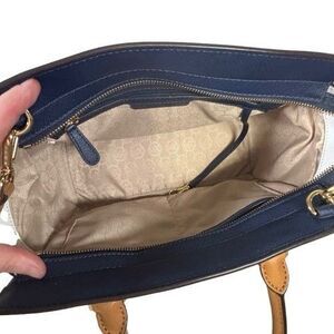 Michael Kors Selma Saffiano Leather Satchel Shoulder Bag Tricolor Navy White Tan