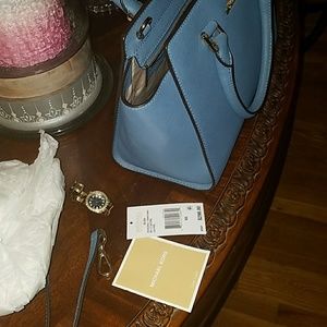 Comes with the silk dustbag as well and an extra Michael Kors bag charm. Has 3 pockets inside.