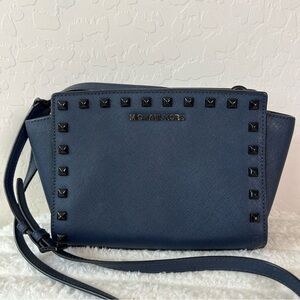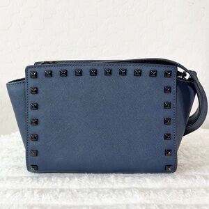 Michael Kors Selma Stud Medium Navy Saffiano Leather Messenger CrossbodyBag