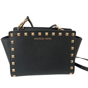 Michael Kors Selma black gold studded leather crossbody bag USED LIGHTLY
